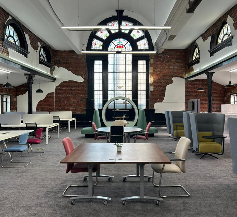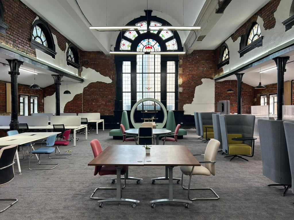 A unique coworking & community hub in Grade II listed building in Leeds, blending vintage charm with modern comfort for curious minds and creative souls.